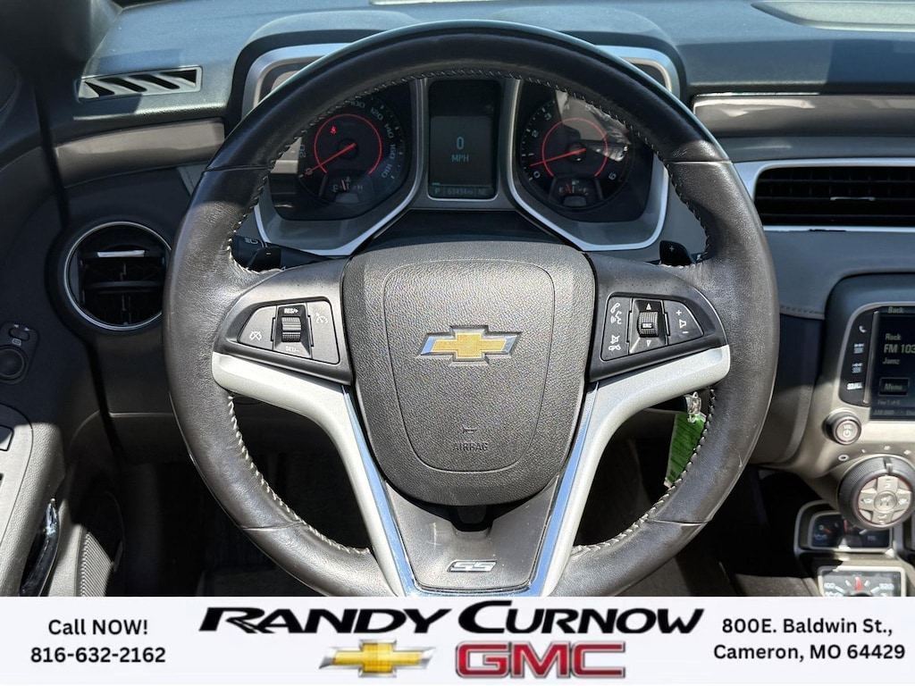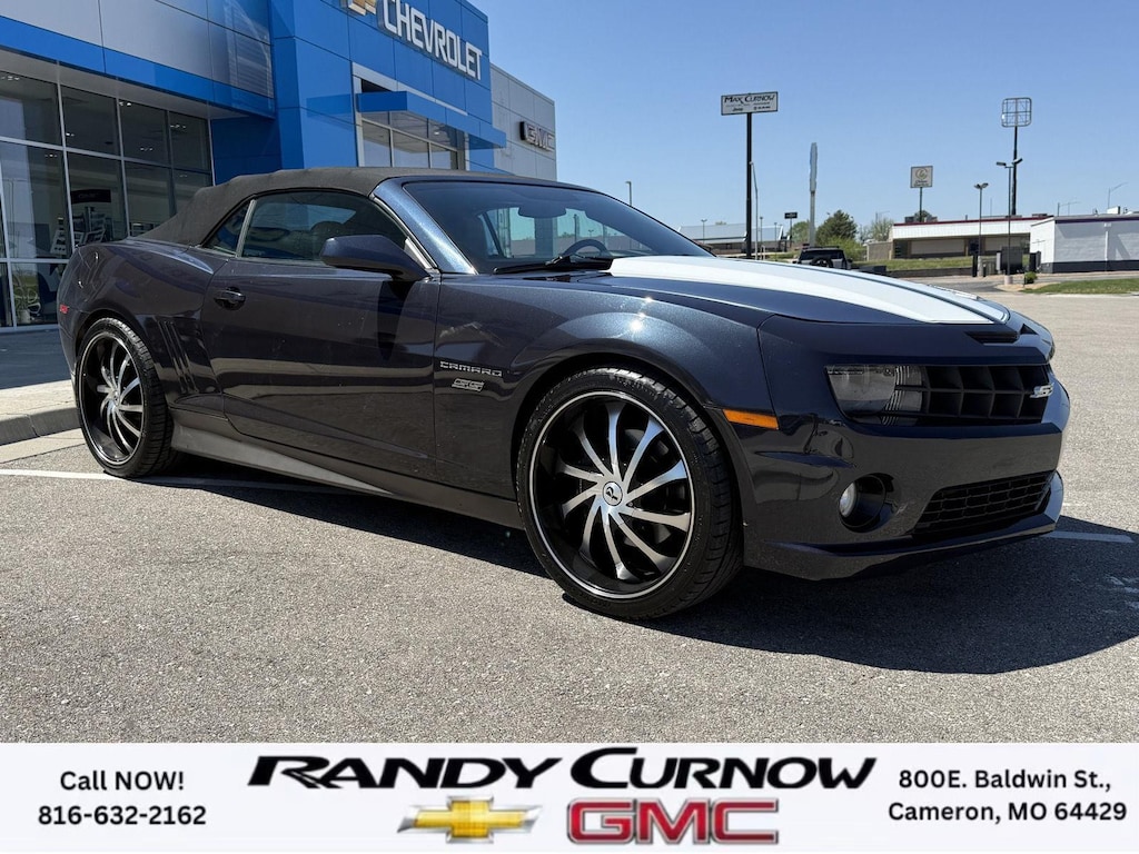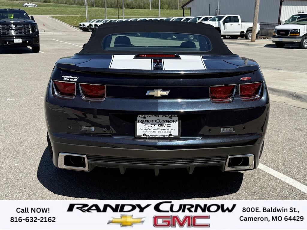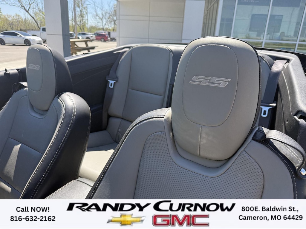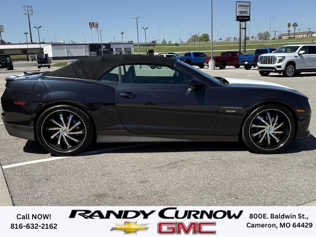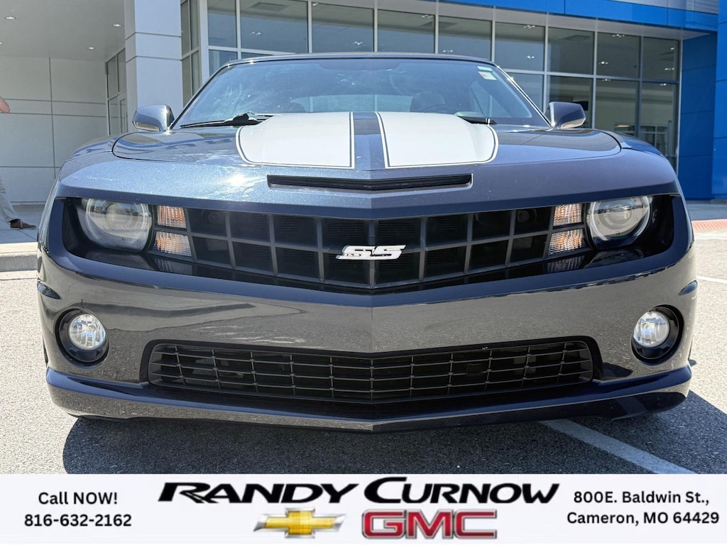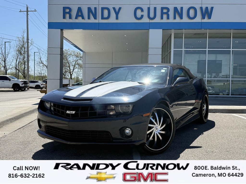 This 2013 Chevrolet Camaro SS, has a Blue Ray Metallic exterior with a Gray interior. Call us at 816-632-2162 and reference stock Number U8092 for further details. One Owner! IMPORTANT PACKAGE INFORMATION: RS Package ($1,350 value)20" X 8" Front and 20" X 9" Rear Aluminum WheelsHigh Intensity Discharge HeadlampsPreferred Equipment Group 1SSTire Sealant and Inflator KitRemote Keyless EntryCarpeted Front Floor MatsMaintenance-Free BatteryElectronic Cruise Control2 Front Cup HoldersElectric Rear-Window DefoggerAnalog Instrumentation4-Wheel Antilock 4-Wheel Disc BrakesLatch SystemPower Programmable Door LocksStainless-Steel Dual-Outlet Exhaust3-Spoke Leather-Wrapped Steering WheelSteering Wheel Mounted Audio ControlsStabiliTrakManual Rake and Telescopic Steering ColumnSIRIUSXM Satellite RadioUltrasonic Rear Park AssistOnStar 6 Months Directions and Connections Plan7-Speaker Audio System FeatureUSB Port Audio System FeatureLeather-Wrapped Shift KnobHot Wheels Special Edition ($6,995 value)Hot Wheels Specific Decal/stripe Package21" Black-Painted Wheels with Red Outline StripeP245/40ZR21 Front/P275/35ZR21 Rear TiresSide Grille DecalPremium Carpeted Floor MatsBody-Color Painted Engine CoverRS PackageHigh Intensity Discharge HeadlampsPreferred Equipment Group 2SSTire Sealant and Inflator KitRemote Keyless EntryCarpeted Front Floor MatsMaintenance-Free BatteryElectronic Cruise Control2 Front Cup HoldersElectric Rear-Window DefoggerTonneau CoverLeather Seat TrimAnalog Instrumentation4-Wheel Antilock 4-Wheel Disc BrakesHeated Driver and Front Passenger SeatsLatch SystemPower Programmable Door LocksStainless-Steel Dual-Outlet Exhaust3-Spoke Leather-Wrapped Steering WheelSteering Wheel Mounted Audio ControlsStabiliTrakManual Rake and Telescopic Steering ColumnSIRIUSXM Satellite RadioUltrasonic Rear Park AssistOnStar 6 Months Directions and Connections PlanUniversal Home RemoteAuxiliary Multi-Function GaugesBoston Acoustics Premium 8-Speaker Audio SystemUSB Port Audio System FeatureHead-Up DisplayLeather-Wrapped Shift Knob Convenience Cruise control maintains a preset vehicle speed; automatically increasing or decreasing throttle to maintain that speed.Safety and Security The vehicle is equipped with a camera that displays an image of the area behind the vehicle on an interior display. Brake assist senses panic braking from the speed of the brake pedal's travel and applies all available power brake boost.Technology and Telematics The owner of the vehicle has the ability to tailor their emergency S.O.S. and concierge services via the internet. The vehicle is equipped with a built-in voice activated navigation system.Convenience Cruise control maintains a preset vehicle speed; automatically increasing or decreasing throttle to maintain that speed.Safety and Security A head-up display projects gauge (speed, RPM, etc.) information onto the inside of the windshield just below the driver's line of sight. Brake assist senses panic braking from the speed of the brake pedal's travel and applies all available power brake boost.Technology and Telematics The owner of the vehicle has the ability to tailor their emergency S.O.S. and concierge services via the internet. The vehicle is equipped with a built-in voice activated navigation system. OTHER NOTABLE FEATURES AND OPTIONS YOU SHOULD KNOW ABOUT: EMISSIONS, FEDERAL REQUIREMENTS, ENGINE, 6.2L V8 SFI, TRANSMISSION, 6-SPEED AUTOMATIC, AXLE, 3.27 RATIO, WHEELS, 20" X 8" (50.8 CM X 20.3 CM) FRONT AND 20" X 9" (50.8 CM X 22.9 CM) REAR FLANGELESS, PAINTED ALUMINUM WITH BRIGHT SILVER FINISH, TIRES, P245/45R20 FRONT AND P275/40R20 REAR, BLACKWALL, SUMMER, BLUE RAY METALLIC, BLACK TOP, SEATS, FRONT SPORT BUCKET, GRAY, FRONT LEATHER SEATING SURFACES, AUDIO SYSTEM WITH NAVIGATION, 7" DIAGONAL COLOR TOUCH SCREEN DISPLAY AM/FM STEREO WITH NAVIGATION DISPLAY, RS PACKAGE, WHITE RALLY STRIPE PACKAGE, LPO, GROUND EFFECTS PACKAGE, ARGENT COLOR, HEADLAMPS, HIGH INTENSITY DISCHARGE, LICENSE PLATE BRACKET, FRONT, REMOTE VE