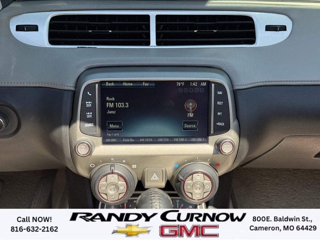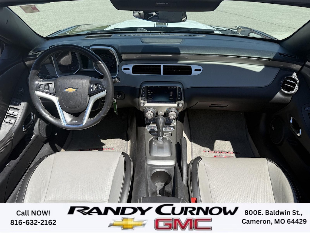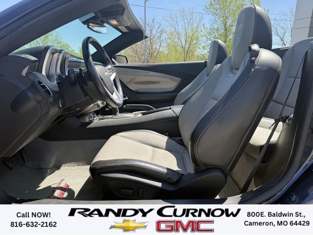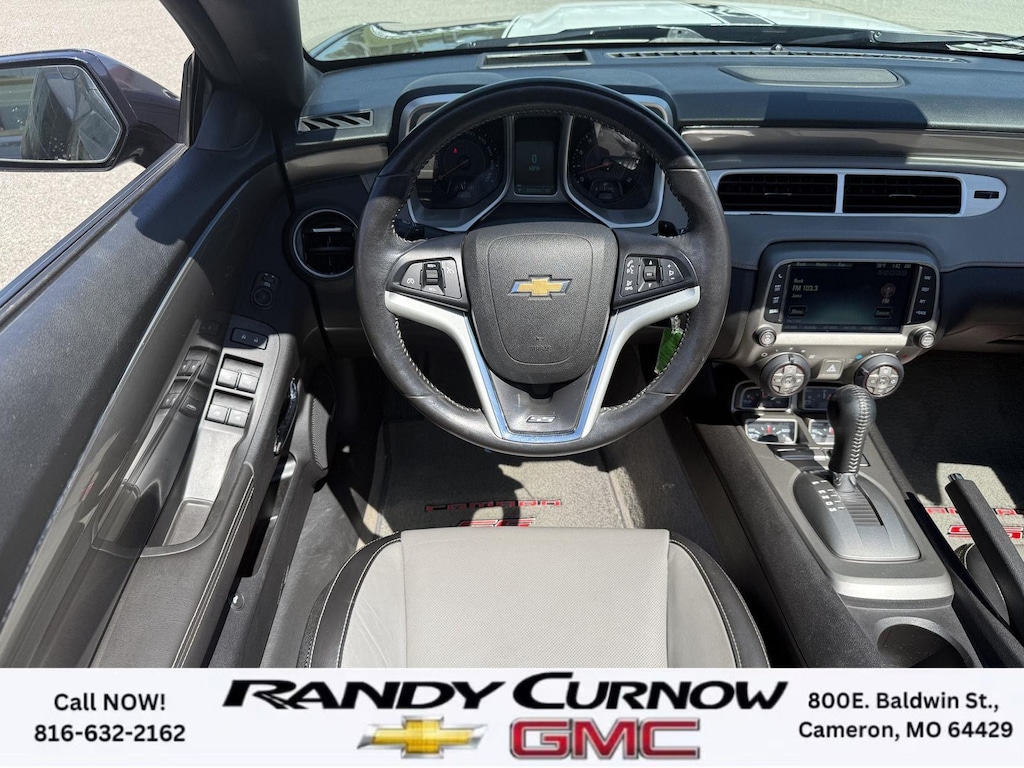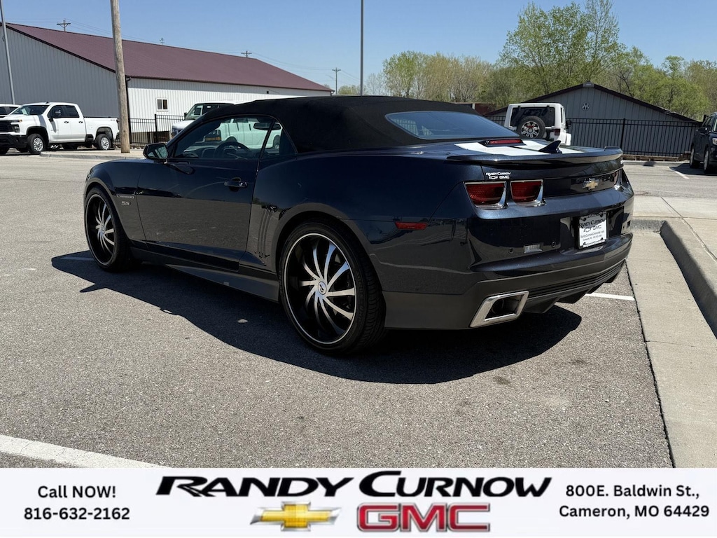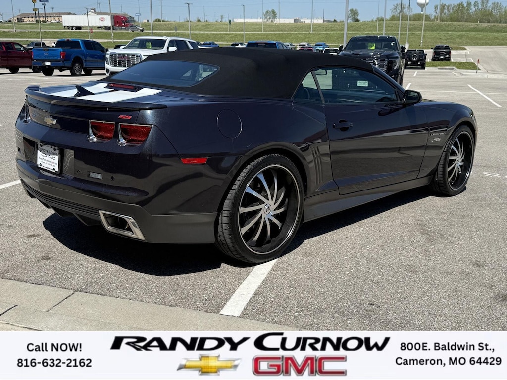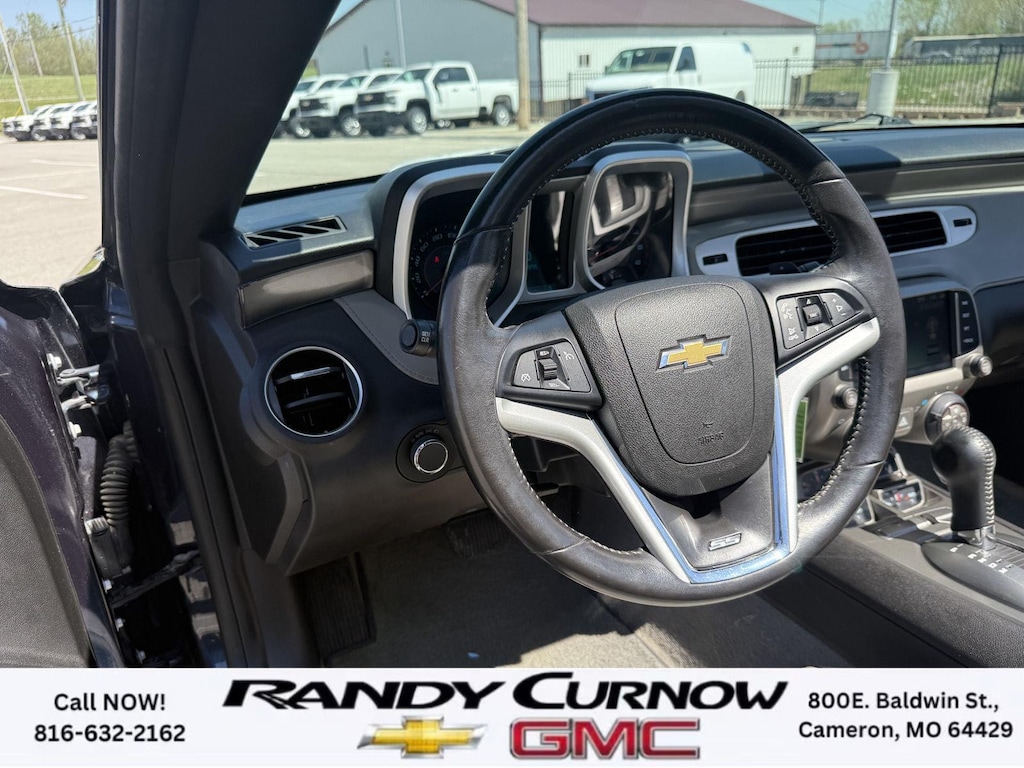 This 2013 Chevrolet Camaro SS, has a Blue Ray Metallic exterior with a Gray interior. Call us at 816-632-2162 and reference stock Number U8092 for further details. One Owner! IMPORTANT PACKAGE INFORMATION: RS Package ($1,350 value)20" X 8" Front and 20" X 9" Rear Aluminum WheelsHigh Intensity Discharge HeadlampsPreferred Equipment Group 1SSTire Sealant and Inflator KitRemote Keyless EntryCarpeted Front Floor MatsMaintenance-Free BatteryElectronic Cruise Control2 Front Cup HoldersElectric Rear-Window DefoggerAnalog Instrumentation4-Wheel Antilock 4-Wheel Disc BrakesLatch SystemPower Programmable Door LocksStainless-Steel Dual-Outlet Exhaust3-Spoke Leather-Wrapped Steering WheelSteering Wheel Mounted Audio ControlsStabiliTrakManual Rake and Telescopic Steering ColumnSIRIUSXM Satellite RadioUltrasonic Rear Park AssistOnStar 6 Months Directions and Connections Plan7-Speaker Audio System FeatureUSB Port Audio System FeatureLeather-Wrapped Shift KnobHot Wheels Special Edition ($6,995 value)Hot Wheels Specific Decal/stripe Package21" Black-Painted Wheels with Red Outline StripeP245/40ZR21 Front/P275/35ZR21 Rear TiresSide Grille DecalPremium Carpeted Floor MatsBody-Color Painted Engine CoverRS PackageHigh Intensity Discharge HeadlampsPreferred Equipment Group 2SSTire Sealant and Inflator KitRemote Keyless EntryCarpeted Front Floor MatsMaintenance-Free BatteryElectronic Cruise Control2 Front Cup HoldersElectric Rear-Window DefoggerTonneau CoverLeather Seat TrimAnalog Instrumentation4-Wheel Antilock 4-Wheel Disc BrakesHeated Driver and Front Passenger SeatsLatch SystemPower Programmable Door LocksStainless-Steel Dual-Outlet Exhaust3-Spoke Leather-Wrapped Steering WheelSteering Wheel Mounted Audio ControlsStabiliTrakManual Rake and Telescopic Steering ColumnSIRIUSXM Satellite RadioUltrasonic Rear Park AssistOnStar 6 Months Directions and Connections PlanUniversal Home RemoteAuxiliary Multi-Function GaugesBoston Acoustics Premium 8-Speaker Audio SystemUSB Port Audio System FeatureHead-Up DisplayLeather-Wrapped Shift Knob Convenience Cruise control maintains a preset vehicle speed; automatically increasing or decreasing throttle to maintain that speed.Safety and Security The vehicle is equipped with a camera that displays an image of the area behind the vehicle on an interior display. Brake assist senses panic braking from the speed of the brake pedal's travel and applies all available power brake boost.Technology and Telematics The owner of the vehicle has the ability to tailor their emergency S.O.S. and concierge services via the internet. The vehicle is equipped with a built-in voice activated navigation system.Convenience Cruise control maintains a preset vehicle speed; automatically increasing or decreasing throttle to maintain that speed.Safety and Security A head-up display projects gauge (speed, RPM, etc.) information onto the inside of the windshield just below the driver's line of sight. Brake assist senses panic braking from the speed of the brake pedal's travel and applies all available power brake boost.Technology and Telematics The owner of the vehicle has the ability to tailor their emergency S.O.S. and concierge services via the internet. The vehicle is equipped with a built-in voice activated navigation system. OTHER NOTABLE FEATURES AND OPTIONS YOU SHOULD KNOW ABOUT: EMISSIONS, FEDERAL REQUIREMENTS, ENGINE, 6.2L V8 SFI, TRANSMISSION, 6-SPEED AUTOMATIC, AXLE, 3.27 RATIO, WHEELS, 20" X 8" (50.8 CM X 20.3 CM) FRONT AND 20" X 9" (50.8 CM X 22.9 CM) REAR FLANGELESS, PAINTED ALUMINUM WITH BRIGHT SILVER FINISH, TIRES, P245/45R20 FRONT AND P275/40R20 REAR, BLACKWALL, SUMMER, BLUE RAY METALLIC, BLACK TOP, SEATS, FRONT SPORT BUCKET, GRAY, FRONT LEATHER SEATING SURFACES, AUDIO SYSTEM WITH NAVIGATION, 7" DIAGONAL COLOR TOUCH SCREEN DISPLAY AM/FM STEREO WITH NAVIGATION DISPLAY, RS PACKAGE, WHITE RALLY STRIPE PACKAGE, LPO, GROUND EFFECTS PACKAGE, ARGENT COLOR, HEADLAMPS, HIGH INTENSITY DISCHARGE, LICENSE PLATE BRACKET, FRONT, REMOTE VE