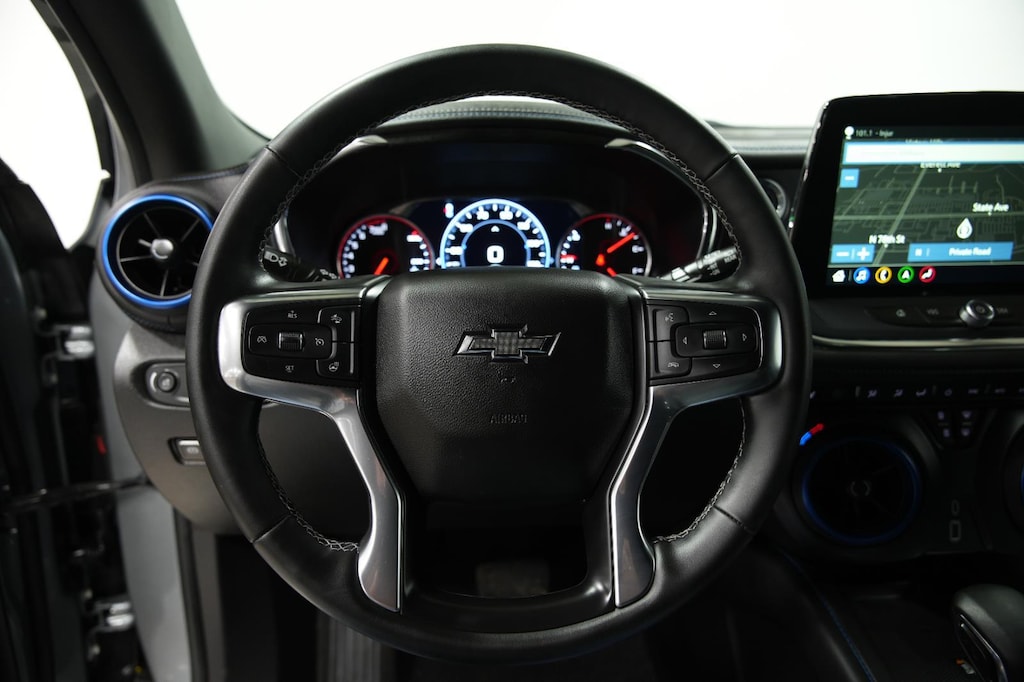 This 2024 Chevrolet Blazer RS, has a Sterling Gray Metallic exterior with a Jet Black/Nightshift Blue interior. Call us at 913-601-5486 and reference stock Number 214231 for further details. IMPORTANT PACKAGE INFORMATION: Enhanced Convenience Package ($950 value)Memory Settings For Driver Seat and Exterior MirrorsHeated Rear Outboard Seating PositionsVentilated Driver and Front Passenger SeatsPower Tilt and Telescoping Steering ColumnDriver Confidence II Package ($1,375 value)Rear Camera MirrorSafety Alert SeatAdaptive Cruise ControlEnhanced Automatic Emergency BrakingHD Surround VisionPreferred Equipment Group 1RSHeated Steering WheelFloor Liner Package ($350 value)Integrated Cargo Liner1st and 2nd Row All-Weather Floor Liners Safety and Security The vehicle is equipped with a system that senses, and then prepares, the vehicle and/or occupants, for an impending forward collision. The vehicle constantly monitors the roadway in front of the vehicle and identifies and tracks pedestrians on an interior display. If the system determines a likely impact, it will automatically take preventative steps to avoid hitting the pedestrian. The vehicle is equipped with a camera that displays an image of the area behind the vehicle on an interior display.Technology and Telematics Apple CarPlay/Android Auto smart device wireless mirroring Mobile devices can wirelessly connect to the internet through the vehicle's private mobile network. OTHER NOTABLE FEATURES AND OPTIONS YOU SHOULD KNOW ABOUT: EMISSIONS, FEDERAL REQUIREMENTS, ENGINE, 3.6L V6, SIDI, DOHC WITH VARIABLE VALVE TIMING (VVT), TRANSMISSION, 9-SPEED AUTOMATIC, ELECTRONICALLY-CONTROLLED, AXLE, 3.49 FINAL DRIVE RATIO, WHEELS, 20" (50.8 CM) GLOSS BLACK ALUMINUM, TIRES, P235/55R20 ALL-SEASON BLACKWALL, STERLING GRAY METALLIC, SEATS, FRONT BUCKET, JET BLACK/NIGHTSHIFT BLUE, PERFORATED LEATHER-APPOINTED SEAT TRIM, AUDIO SYSTEM, CHEVROLET INFOTAINMENT 3 PREMIUM SYSTEM, DRIVER CONFIDENCE II PACKAGE, ENHANCED CONVENIENCE PACKAGE, LPO, FLOOR LINER PACKAGE, COOLING SYSTEM, HEAVY-DUTY, ALTERNATOR, 170 AMPS, HITCH GUIDANCE, HITCH VIEW, TRAILERING EQUIPMENT, SUNROOF, POWER PANORAMIC, TILT-SLIDING WITH POWER SUNSHADE, BLACK TWO-TONE ROOF, SEATS, VENTILATED DRIVER AND FRONT PASSENGER, SEATS, HEATED, REAR OUTBOARD SEATING POSITIONS, MEMORY SETTINGS, LPO, ALL-WEATHER FLOOR LINERS, LPO, INTEGRATED CARGO LINER, STEERING COLUMN, POWER TILT AND TELESCOPING, ADAPTIVE CRUISE CONTROL, REAR CAMERA MIRROR, REAR CAMERA MIRROR WASHER, HD SURROUND VISION, ENHANCED AUTOMATIC EMERGENCY BRAKING, SAFETY ALERT SEAT SERVING OUR FRIENDS AND NEIGHBORS IN KANSAS CITY At Randy Curnow Buick GMC, we're more than just a car dealership in Kansas City. We're also members of the greater Olathe, Overland Park, Summit and Leavenworth communities, who work and live here just like you, and we want only what's best for our neighbors. We strive to support community initiatives and events, and we're committed to delivering the best customer service around, from new Buick and GMC sales, to used vehicles, to finance and service. We provide the best of the best to all our customers. FINANCING OPTIONS: Take advantage of our attractive low-rate financing options. Our access to various Credit Unions and National Banks can provide financing for most credit levels. We can tailor a finance package to fit your needs. To get started, complete our secure online credit application.